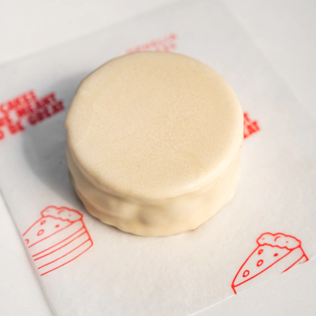 Tapas de sablée de nuez, relleno de mantequilla de maní con chocolate con leche (como el relleno del bon o bon pero muuuuucho más rico) y baño de chocolate blanco.