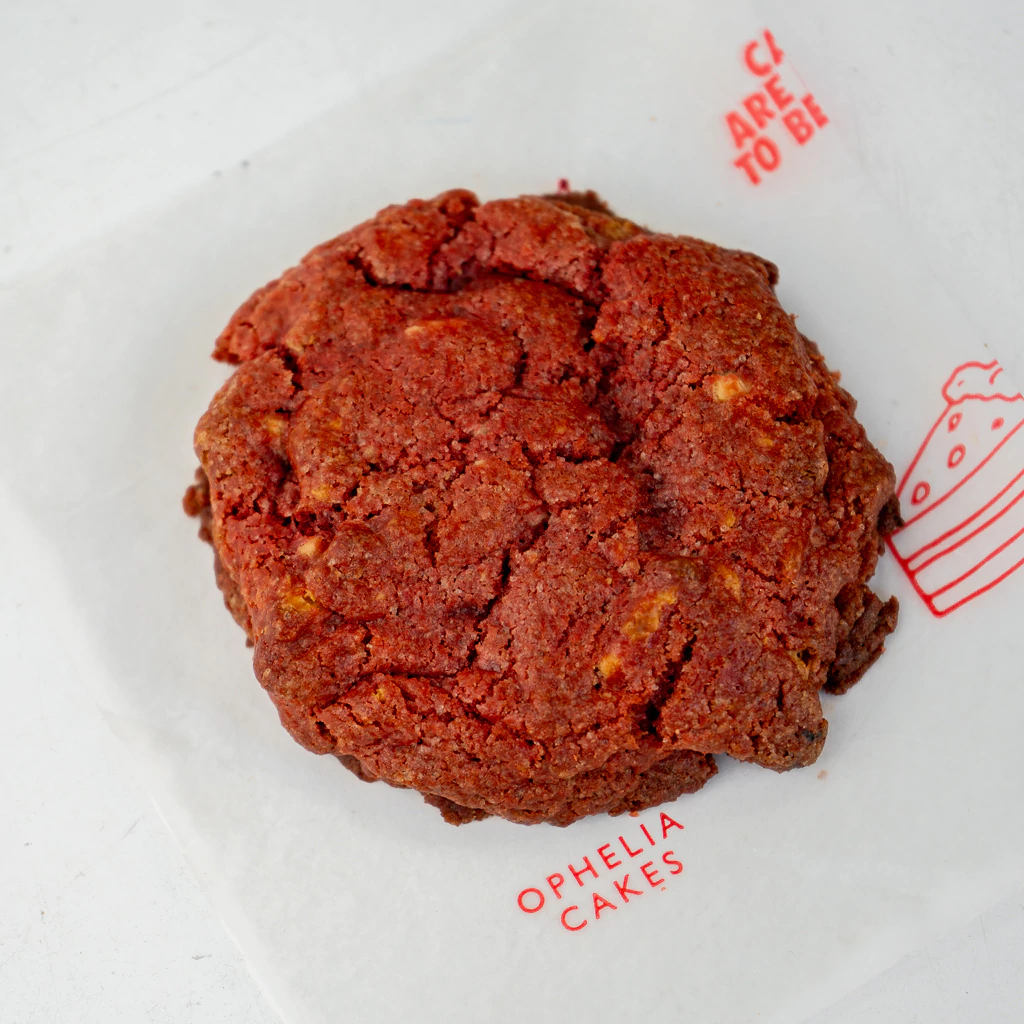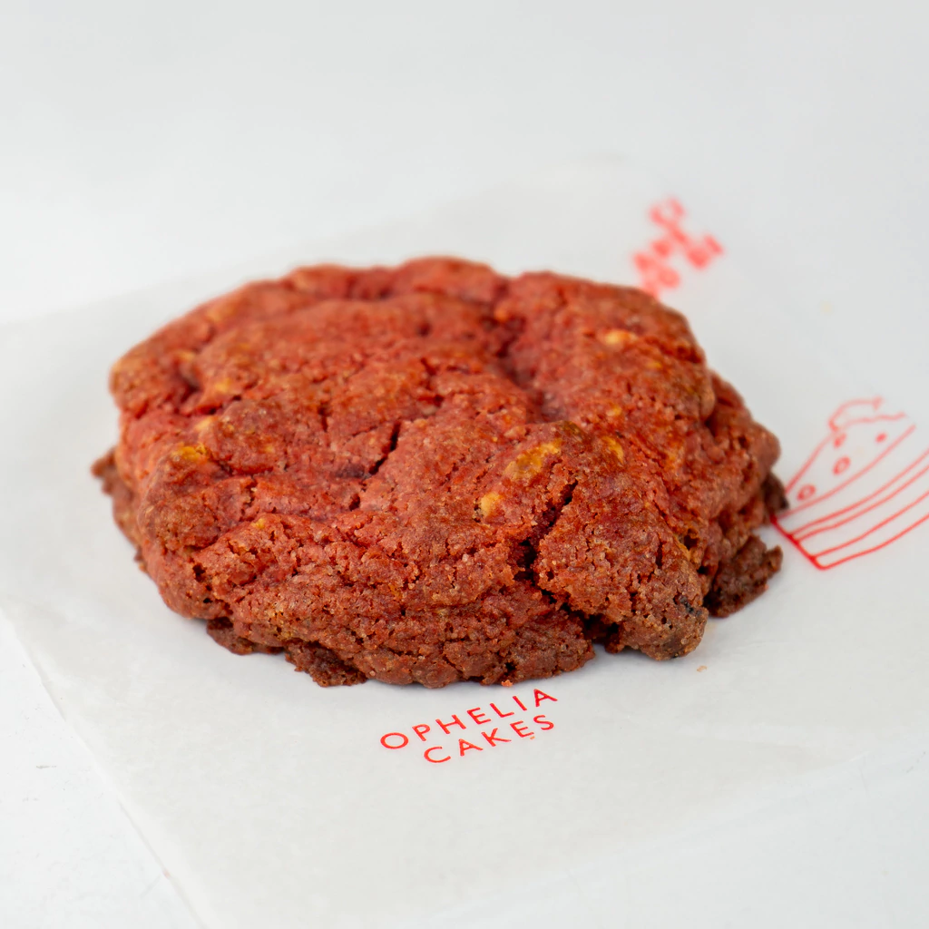 Como la autentica torta estadounidense, esta cookie tiene ese rojo caracteristico, un toque de cacao y chocolate blanco!