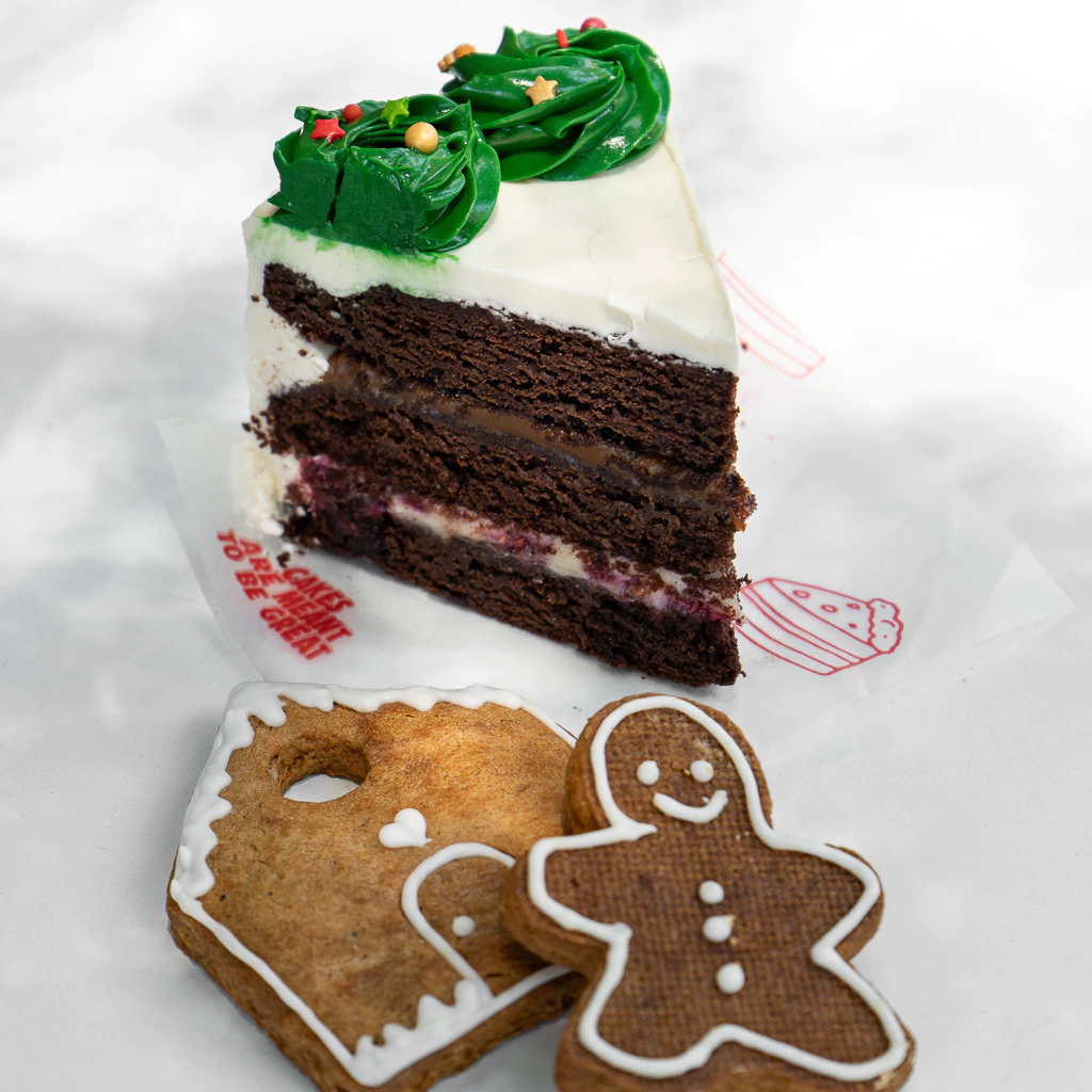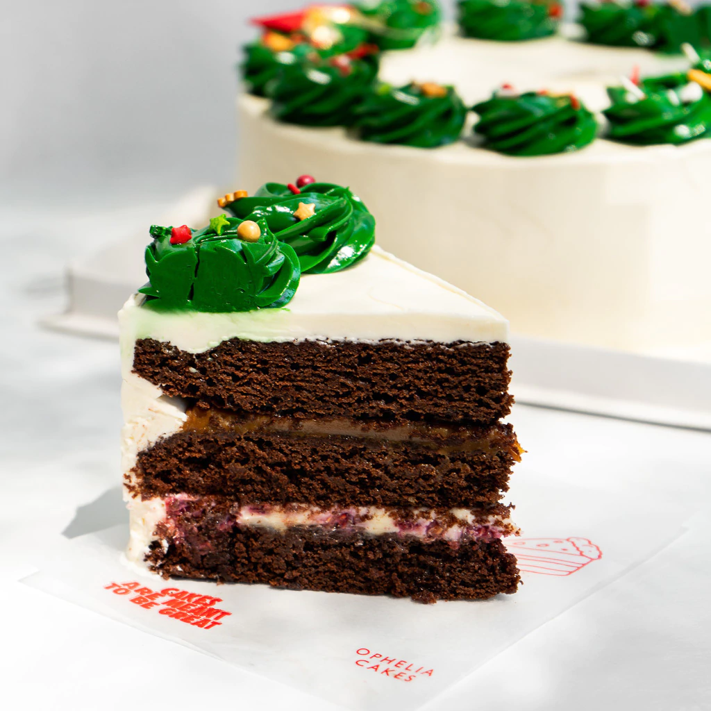 Relleno clásico de dulce de leche y para los más atrevidos le sumamos una ganache de chocolate blanco y frambuesas, cubierta con buttercream y sprinkles navideños. IMPORTANTE ( el moño decorativo de la torta no es comestible ).